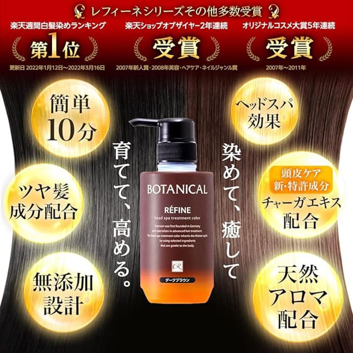 このヘアカラートリートメントは、カラーリングとトリートメントの効果を兼ね備えており、22種類の天然植物エキスを配合しています。これにより、髪に優しい成分がしっかりと染み込み、健康な髪を維持し髪に潤いを与え、しっとりとした仕上がりになります。