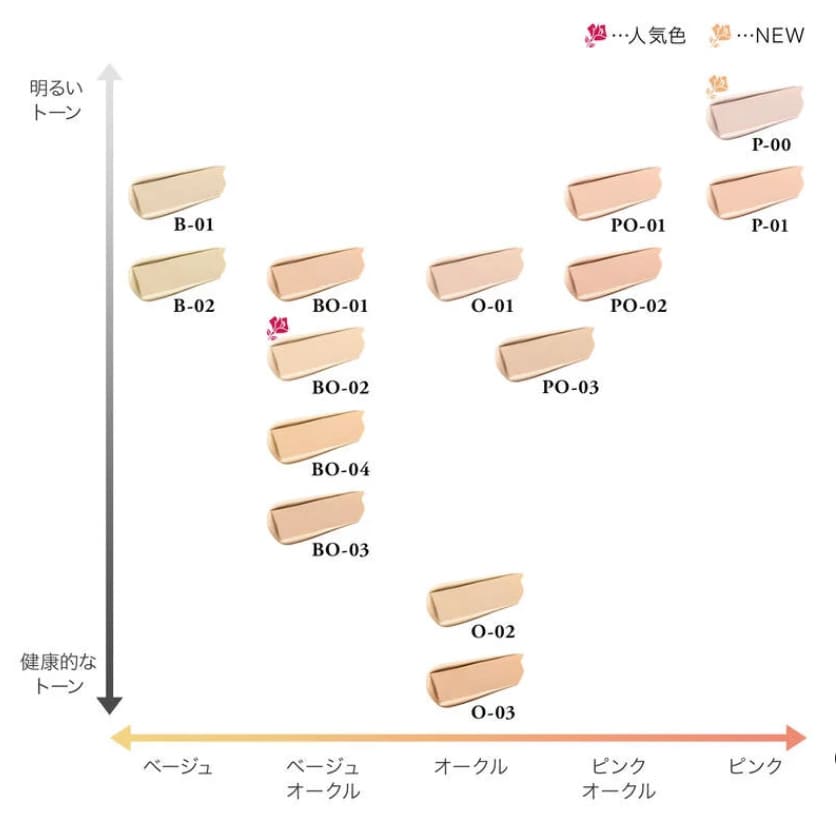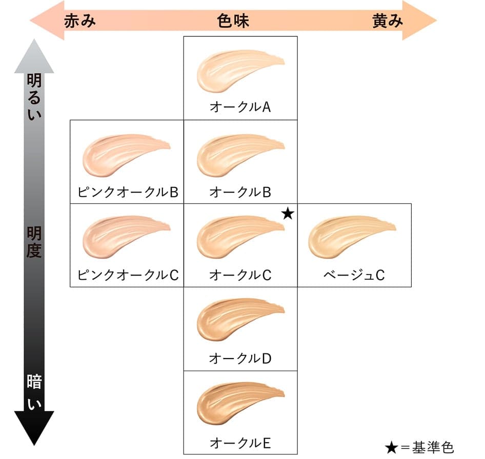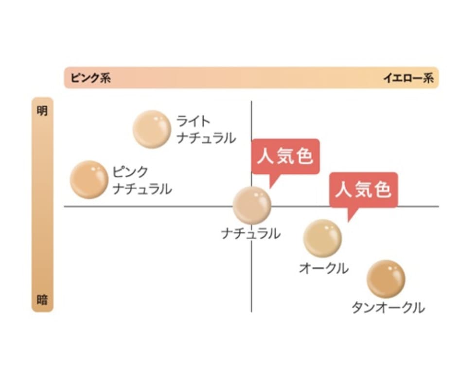 カラー選びに悩んだ時には、自分の肌色よりも暗めのカラー塗ることでシミやクマをを自然にカバーし目立ちにくくすることができますので、フェイスラインより少し下の地肌の色やシミより、少し暗目のカラーがおすすめです。