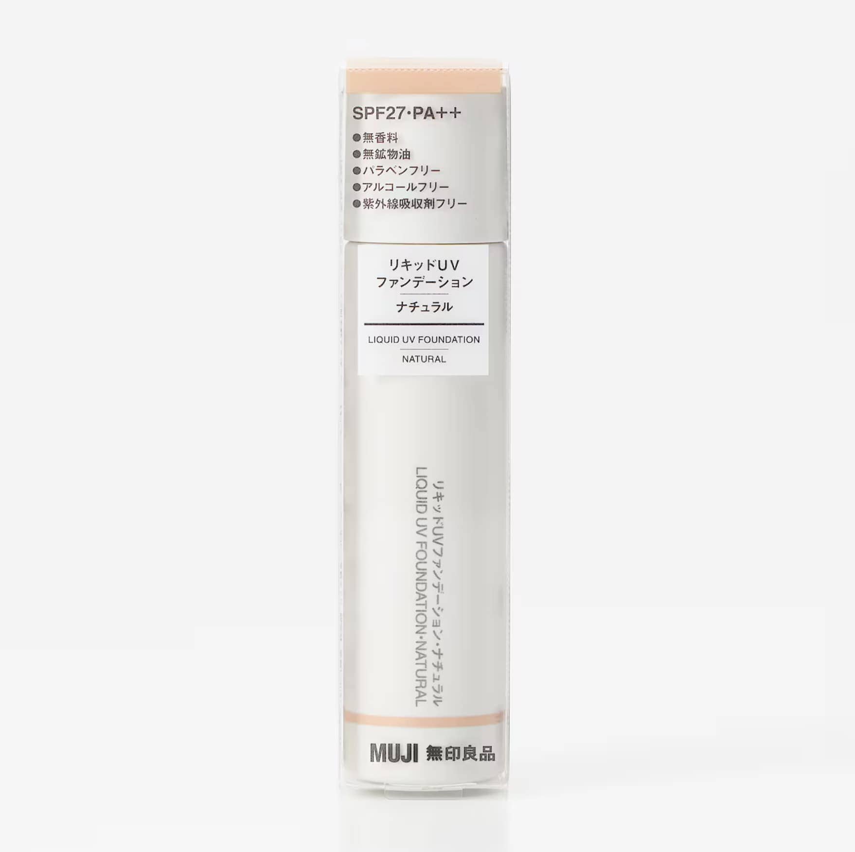 良品計画の「【無印良品】  リキッドUVファンデーション」は、カミツレ花エキス、ホホバ種子油、シア脂、アンズ核油などの植物性うるおい成分やヒアルロン酸Naが配合されているリキッドファンデーションです。プチプラで店舗も多いので手軽に購入することができるでしょう。無香料、無鉱物油、パラベンフリー、アルコールフリー、紫外線吸収剤フリーなので敏感肌にもおすすめです。キャップを閉めてよく振ってから、使うようにしましょう。