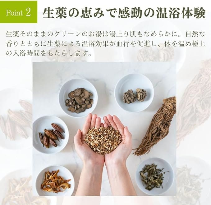 自然由来の薬用植物を使用し、リラックス効果や美肌効果が期待できます。季節や体調に合わせて選べる種類が豊富で、自然の恵みを感じられます。