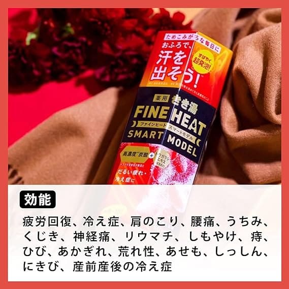 炭酸ガスの発生により、血行が促進され、疲労回復に役立ちます。シュワシュワとした泡が特徴で、心地よい刺激とともにリラックスできます。