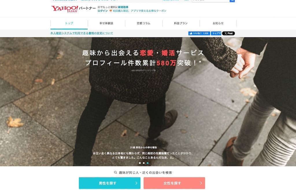 インターネット関連サービスの大手であるLINEヤフー株式会が運営しているマッチングアプリ・紹介サービスがYahoo!パートナーです。