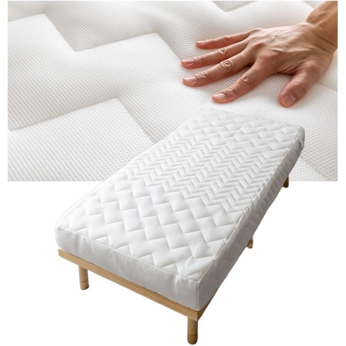 ファイバーマットレスは、ポリエチレン樹脂を網目状に固めたファイバーを使って製造されたマットレスです。通気性に優れており水洗いもできるためダニやカビなどの発生を抑制し清潔に保てます。ウレタンフォームと比較すると少し硬いと感じるかもしれません。