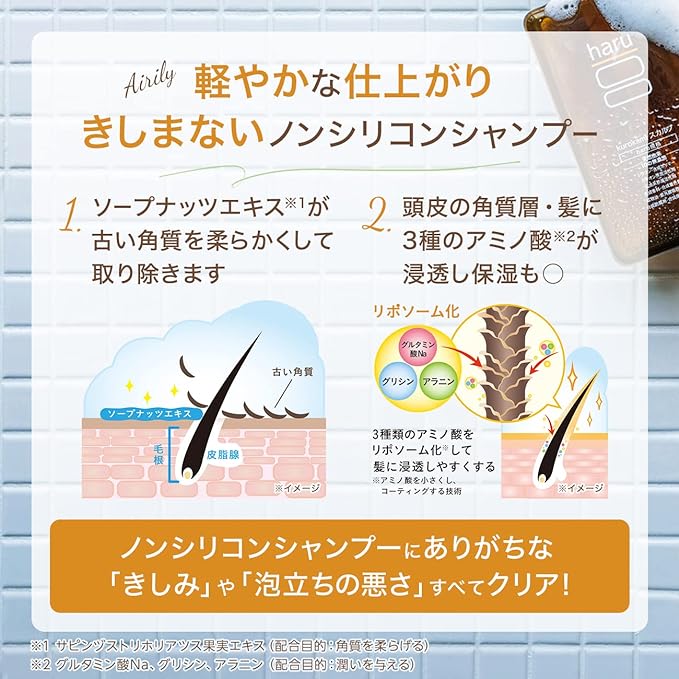 ノンシリコン、アミノ酸系洗浄成分配合