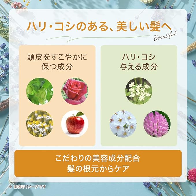 また、髪と頭皮にうるおいを与えて、保ってくれるため、乾燥を防ぎ、健康的な状態を維持するサポートをしてくれるでしょう。さらに、ノンシリコン、アミノ酸系洗浄成分配合なので、頭皮を優しく洗浄し、不要な皮脂を除去が可能です。