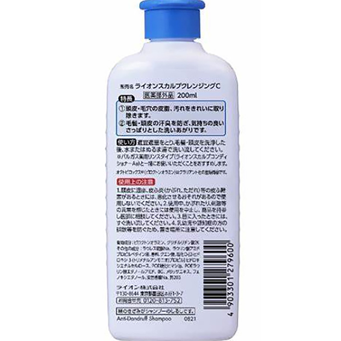 フケ・かゆみを防ぎ、毛髪・頭皮を清浄にする。毛髪・頭皮をすこやかに保つ。毛髪・頭皮の汗臭を防ぐ。