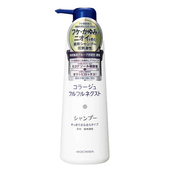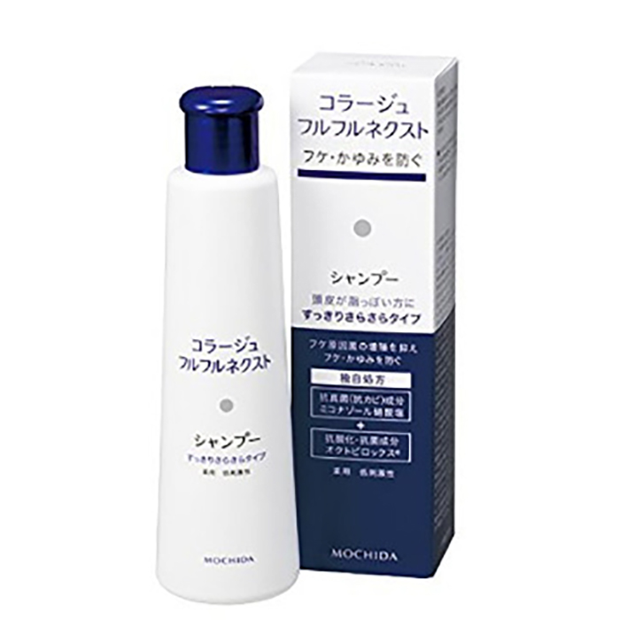コラージュフルフルネクストシャンプーは、頭皮の状態に合わせて選べる2つのタイプがあります。青いキャップ(すっきりさらさらタイプ)は、頭皮が脂っぽい方や髪の短い方にこそおすすめです。ふけやかゆみを効果的に防ぎ、髪はさらさらに洗い上がります。
