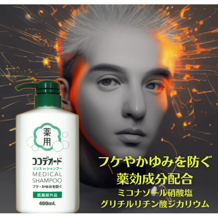 ココデオード薬用リンスインシャンプーは、シンプルで使いやすいシャンプーです。無香料でメントールフリーなので、性別や年齢に関係なく男女ともに利用できます。さらに、気になるフケやかゆみを防ぐために、ミコナゾール硝酸塩とグリチルリチン酸ジカリウムの薬用成分が配合されています。