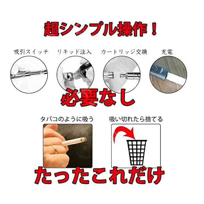 操作は非常に簡単で、ボタンが一切なく、吸うだけで使用できます。これにより、面倒なメンテナンスやリキッドの充填が不要で、いつでもどこでも手軽に楽しむことができます。また、1mlのリキッド容量で約300回の吸引が可能です。