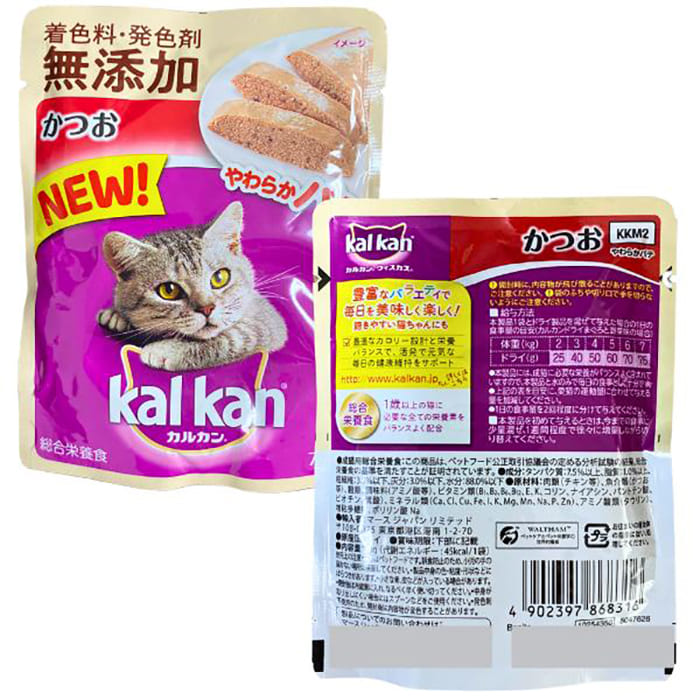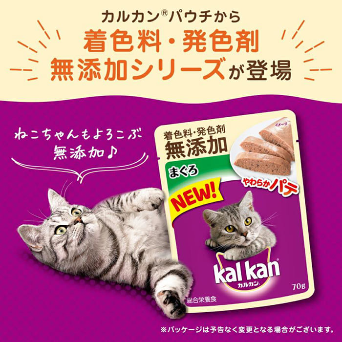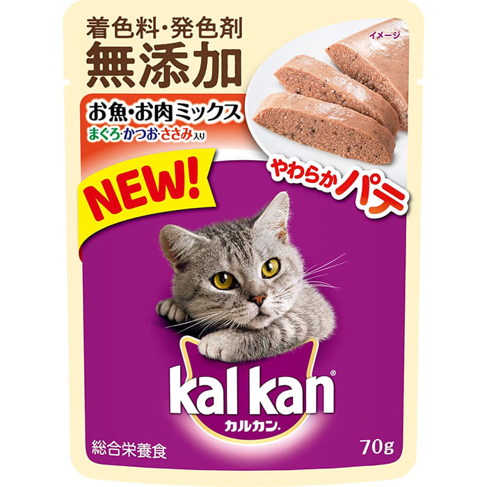 カルカンやわらかパテお魚・お肉ミックスは、最適なカロリーと栄養バランスを考えたキャットフードです。独自の開発した製法により、新食感で味わえる美味しさを実現しています。そのため、食べやすさと食いつきに自信があります。また、着色料や発色剤は一切使用しておらず無添加のため、毎日の健康維持サポートとして安心して食べ続けられますね。さらに、柔らかいパウチタイプの噛む力が弱い体力が落ちた猫にもおすすめの商品です。