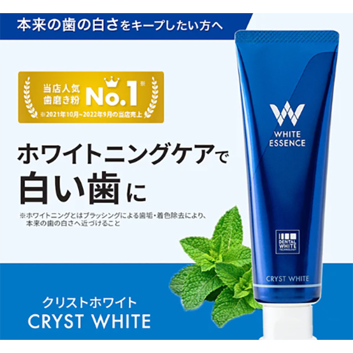 ミントの香りが爽やかな「クリストホワイト」は、歯を白くする成分が豊富に含まれており、歯科医院のホワイトエッセンスによって開発されました。電動歯ブラシでも安心して使える低研磨性を実現しています。