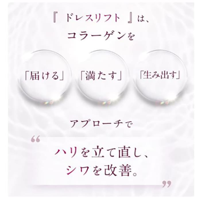 Attenir【アテニア】ドレスリフト デイエマルジョンは、コラーゲンを生み出して、シワ改善へと導いてくれる乳液です。角層の鈍化の原因である「カリクレイン7」に着目すると同時に、届ける・満たす・生み出すのアプローチで、ハリを立て直します。「肌の受け入れ態勢を整えて浸透効率を上げる」という今までにないアプローチをしてくれるので、肌に感動のハリとうるおいが満ちあふれることでしょう。