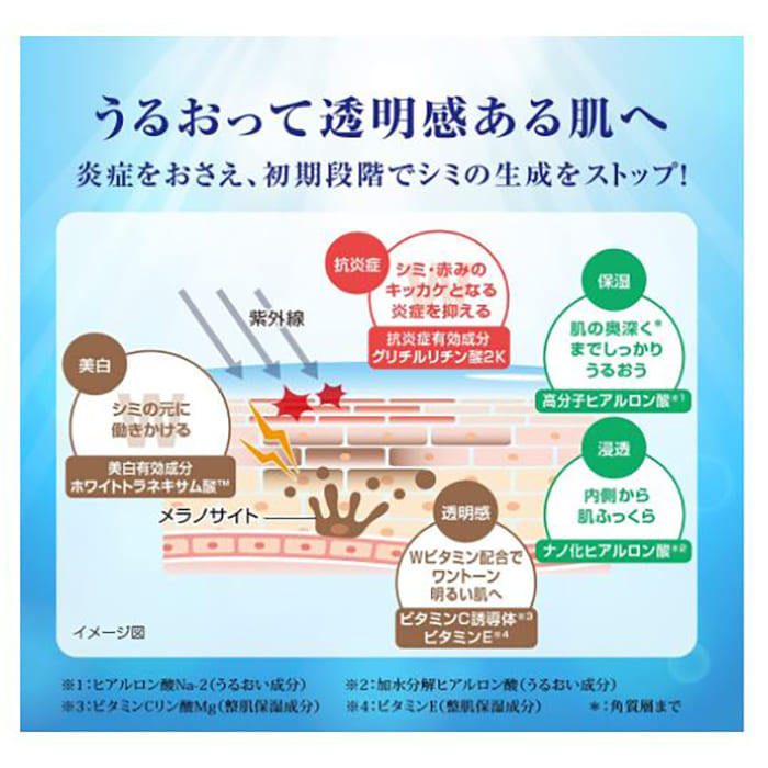 ロート製薬【肌ラボ】 白潤プレミアム 薬用浸透美白乳液は、シミの元であるメラノサイトにアプローチする美容液級の薬用美白乳液です。美白有効成分のホワイトトラネキサム酸や抗炎症有効成分のグリチルリチン酸2K、整肌保湿成分のビタミンC誘導体やビタミンEを配合しています。
