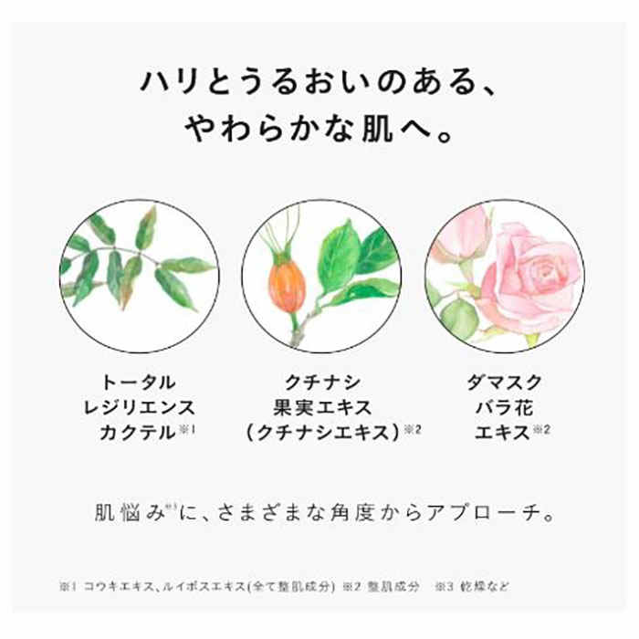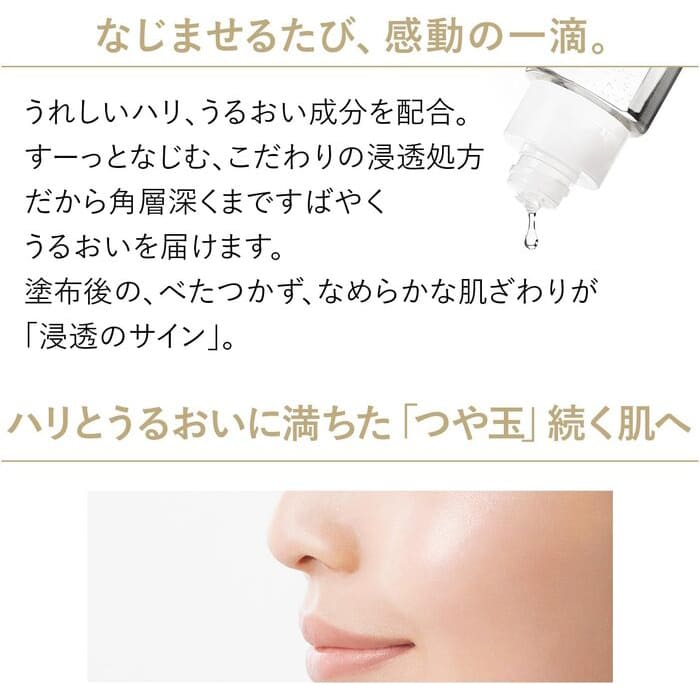 毛穴のたるみやニキビなどの肌悩みの多くは、乾燥によるバランスの乱れが原因とされており、そんな肌にうるおいを与え、美容成分を届けるのが化粧水の役割です。角層の一つひとつがふっくらとすることで、ハリが生まれ、キメが整った肌になります。また、化粧水は次に使う乳液や美容液などのスキンケアアイテムの浸透を高め、効率的なお手入れをサポートする効果も期待できます。