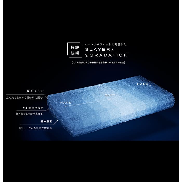 独自の立体形状で、仰向け寝、横向き寝にも対応しており、快眠の原点・頭寒足熱を実現させる「サラットドライレイヤー」構造で、ムレや熱のこもりも軽減。より快適な睡眠をサポートしてくれます。