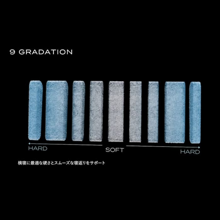 もう一つの特殊技術が首部頭部2分割構造です。左右両側がそれぞれ2分割されて2つとも異なる構造のため、寝返りを打っても首と頭部を優しく支えてくれます。