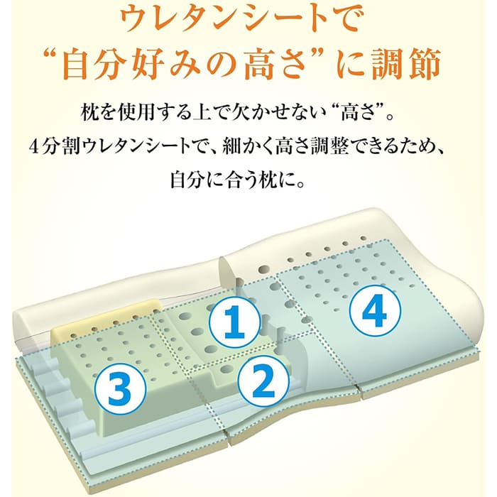どんな寝姿になっても首・体に負荷がかからないため、夜中に目が覚めるといったことはありません。高さも4段階を選べるため、フィット感はいいけれど高さがイマイチといった失敗はなく、自分好みの高さが選択できます。