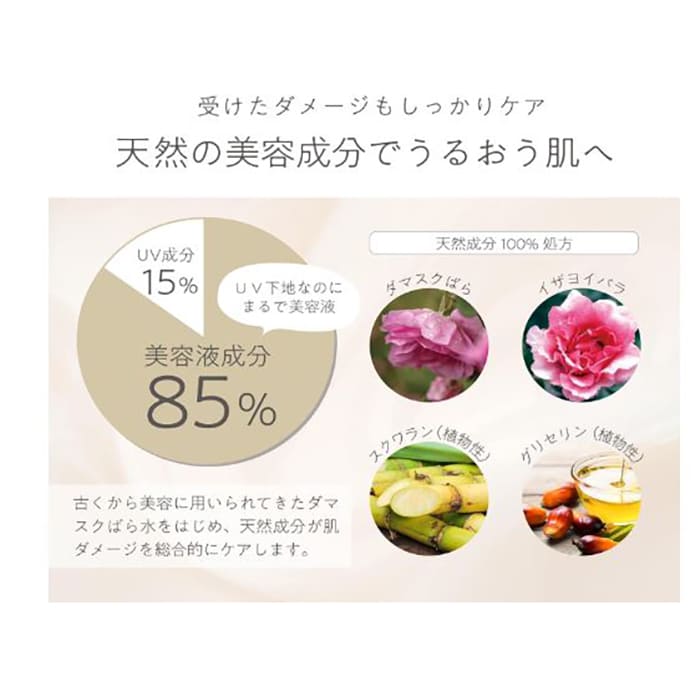 また、紫外線はもちろん、乾燥やちり・花粉などの大気中の微粒子からも肌をしっかりと効率的に守ります。皮脂となじみにくい高分子によって化粧崩れを防いでくれるため、汗をかきやすい季節にもおすすめです。