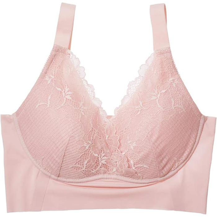 ストレスフリーな着心地とバストサポートの両方が叶えられることが特徴。レース・フリル・ホック・ワイヤーを使用せず、肌負担の少ないシンプルで着やすい構造です。