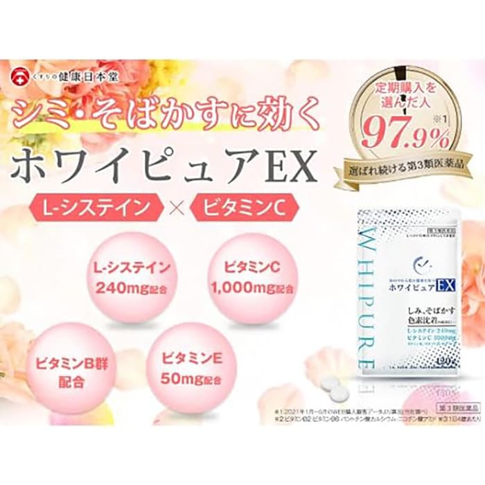 第一薬品工業のホワイピュアEXは、第三類医薬品として販売されている日焼け止めサプリ。シミ・そばかす・色素沈着を緩和する効能効果が認められています。
