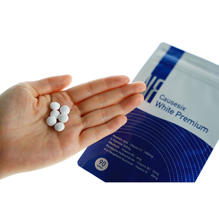 至誠堂製薬のコーズシックスホワイトプレミアムは、第三類医薬品に指定された日焼け止めサプリ。1日2回の服用で、身体の内側から輝く肌へと導いてくれます。