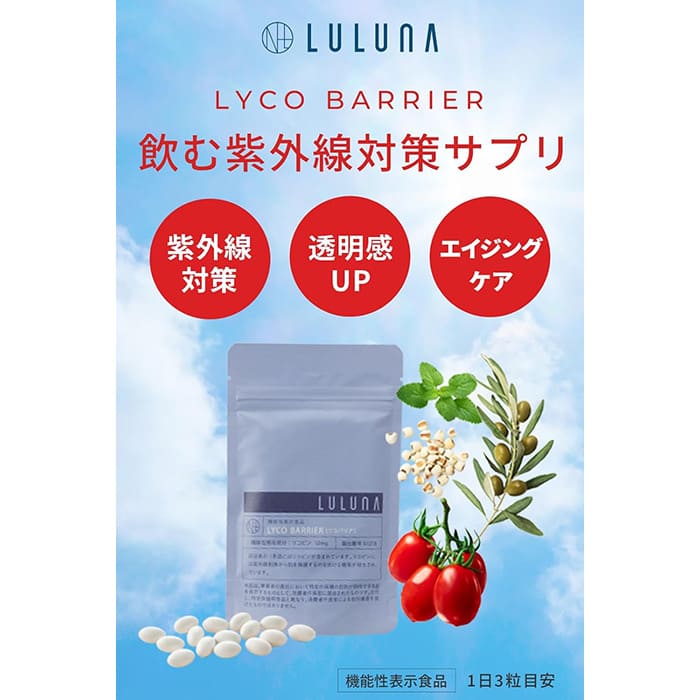 リコバリアは、植物の力で紫外線対策をする日焼け止めサプリ。強い日差しの中育ったトマトに含まれるリコピンを配合、リコピンは日焼けから肌を保護する作用が報告されています。