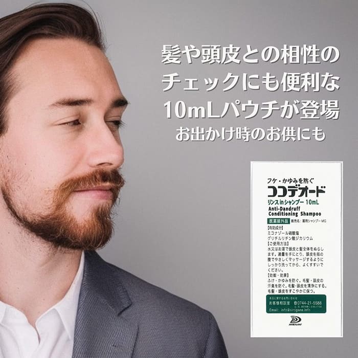 白銀製薬のココデオード薬用リンスイン シャンプーは、年齢性別を問わない使いやすいシャンプーです。殺菌効果のあるミコナゾール硝酸塩・抗炎症効果のあるグリチルリチン酸ジカリウムが配合されているため、フケ・かゆみ・炎症を防止します。