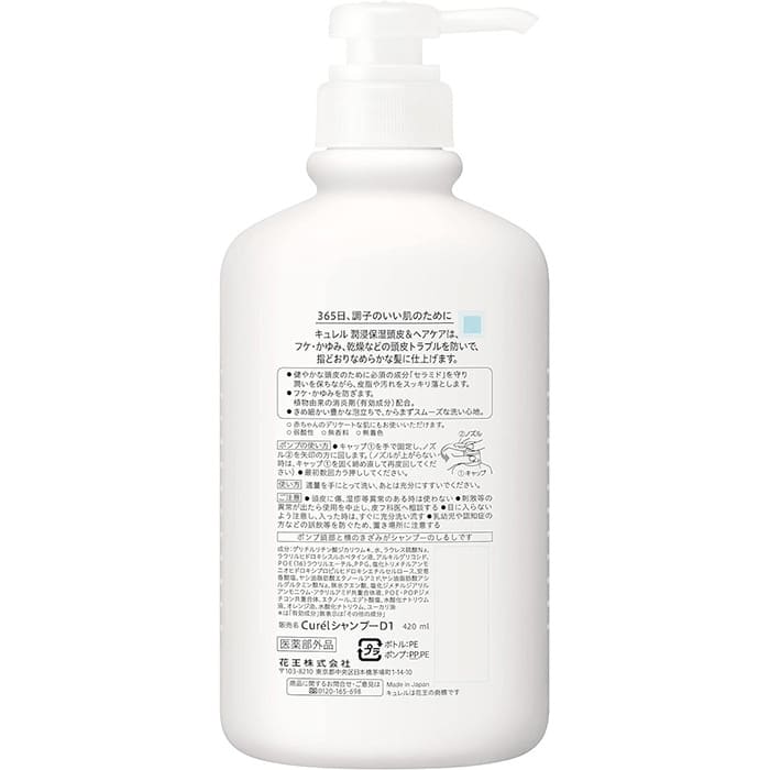 頭皮にやさしいシャンプーというと洗浄力が弱いイメージがありますが、キュレルは豊かな泡が細部にまで行き届き、髪と頭皮の落ちにくい汚れ・臭いを一掃します。そして皮脂を除去しながらも乾燥防止のうるおいを与えてくれるのも、キュレルの特徴です。保湿成分であるセラミドが配合されているため、常にうるおいを保ってフケやかゆみを防止してくれます。