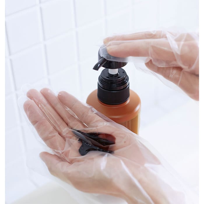 予洗い後の髪に、白髪染めシャンプーを適量取り、泡立てながら髪全体に均等に馴染ませます。シャンプーの泡立ちを良くするためには、髪を十分に濡らすことが重要です。均等に泡を行き渡らせることで、色ムラを防ぎます。
