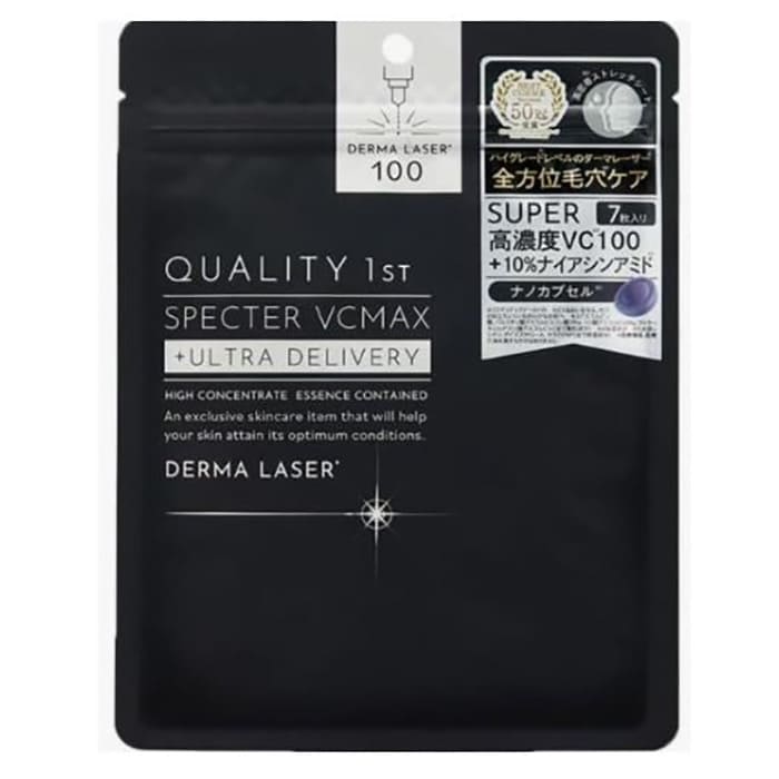 【QUALITY 1st】ダーマレーザースペクター VCMAXマスクは、限界まで高濃度・高浸透を追究して作られたフェイスマスクです。高保湿成分と高濃度美容成分をたっぷりと含んだ高密着ストレッチシートが肌にピタリとフィットし、毛穴やざらつき、気になる肌悩みにアプローチします。