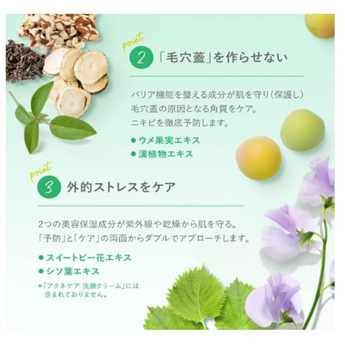 殺菌作用は、主にニキビを悪化させる原因菌を殺菌し、抗炎症作用は、毛穴周りの炎症を抑えてニキビの進行を防ぐ作用のある成分です。皮脂抑制作用は、皮脂の分泌を抑えてニキビの発生・進行を防ぎ、角質ケア作用は、余分な角質を柔軟・除去する作用がある成分です。