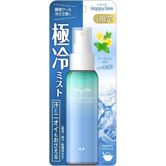 ハッピーデオのデオドラントミスト アイスダウンは、心地よい使用感を実現したデオドラントミスト。皮膚の感覚刺激に着目した独自のKai-tech技術を採用し、より心地よい使用感を追求しています。