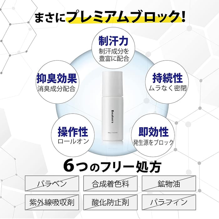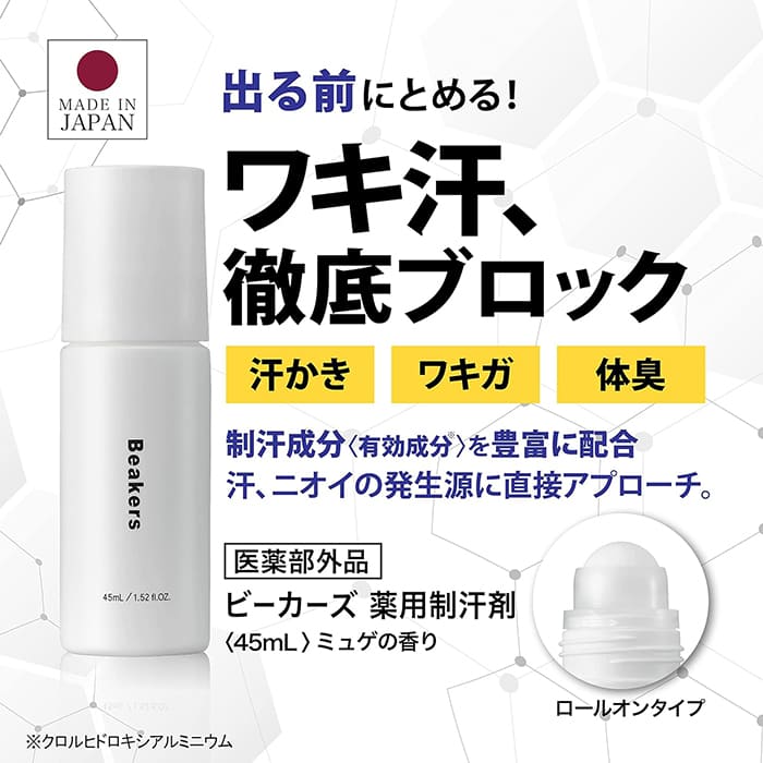ビーカーズの薬用制汗剤は、汗をブロックし臭いを抑えてくれる制汗剤。制汗成分を有効成分として最大限まで配合し、独自の配合比率で徹底的に汗をブロックしてくれます。