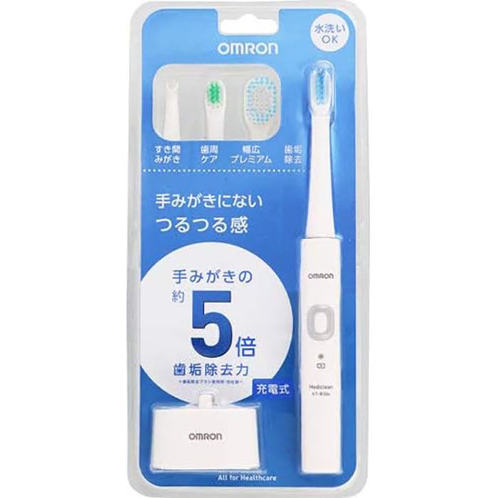 オムロン 音波式電動歯ブラシ HT-B304-Wは、毎日の歯磨きを快適にする、高性能な音波式電動歯ブラシです。ケアの目的に合わせて選べる4醜類のブラシヘッド(歯垢除去、歯周ケア、すき間みがき、幅広プレミアム)が付属でついています。縦方向、横方向の振動を組み合わせた、独自の立体微振動「マルチアクション」と1分間に約25,500回の高速振動「クリーンモード」で、歯垢を効果的に除去し、歯茎をマッサージします。