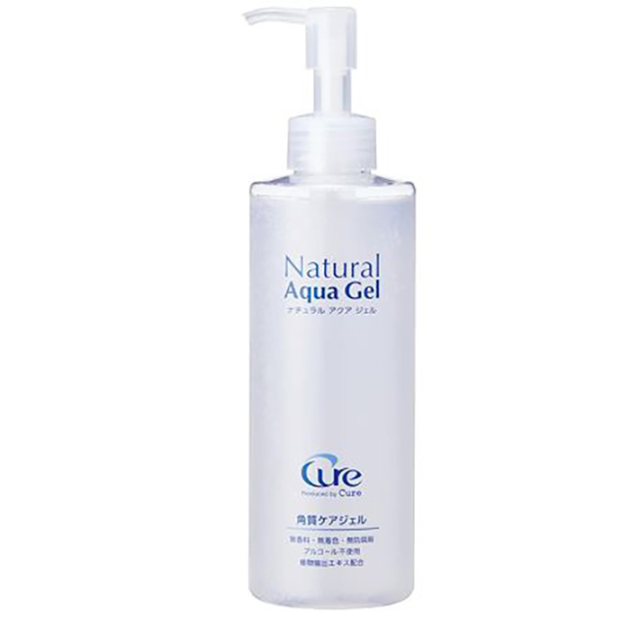 【Cure】 ナチュラルアクアジェルは、成分の約90%が水でできているピーリングジェルです。「キレイに落とす」ことにこだわって作られており、週2回の角質ケアでつるんとした素肌を目指すことができます。肌荒れ防止効果のある天然植物エキスも配合されているので、肌をいたわりながらのケアが可能です。無香料・無着色・無防腐剤で余計な添加物は配合されていません。