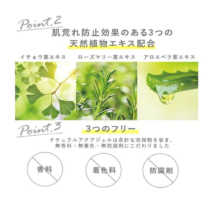 グリセリン、アロエベラ葉エキス、イチョウ葉エキス、ローズマリー葉エキス、BG