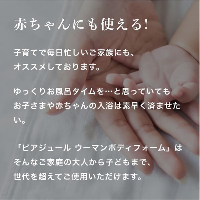 黒ずみのケアとしてだけでなく、シェービング後の不快感や生理用品の摩擦から肌をケアするために使用することもおすすめ。泡がさっと肌へ浸透するため、べたつかずにうるおいを保ってくれます。