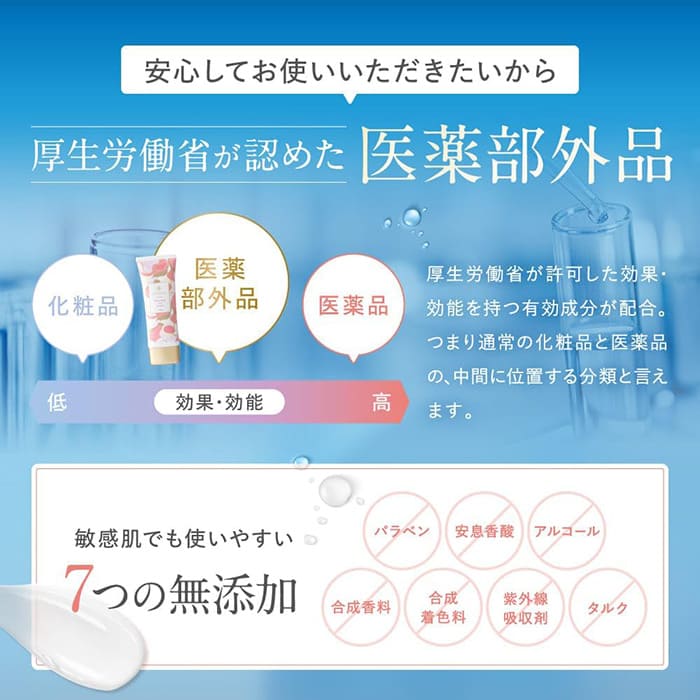 産婦人科医によるアレルギーテストが行われた、低刺激処方も特徴のひとつ。香料・着色料・アルコールフリーなので、肌が敏感な人でも安心して使用できます。