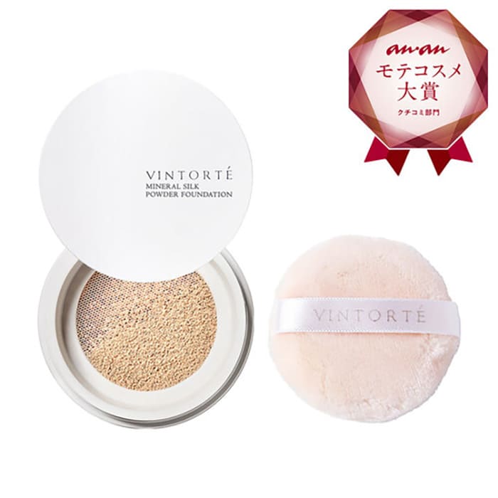 VINTORTEミネラルシルクファンデーションは、ミネラルとピュアシルクを配合した100%天然成分でできたパウダーファンデーションです。