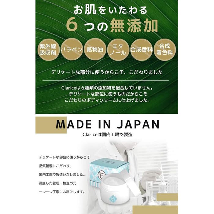 Clarice(クラリス)黒ずみ対策クリームは、Wの有効成分配合でトータルボディケアが叶う黒ずみ対策クリームです。