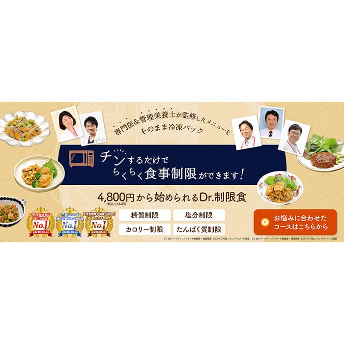 Dr.つるかめキッチンは、専門医監修の栄養バランスの取れた食事を、冷凍で自宅までお届けする宅配食サービスです。