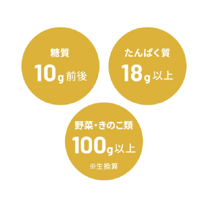糖質30g以下、タンパク質20g以上で、1食分の野菜も取れるので、栄養バランスも抜群です。