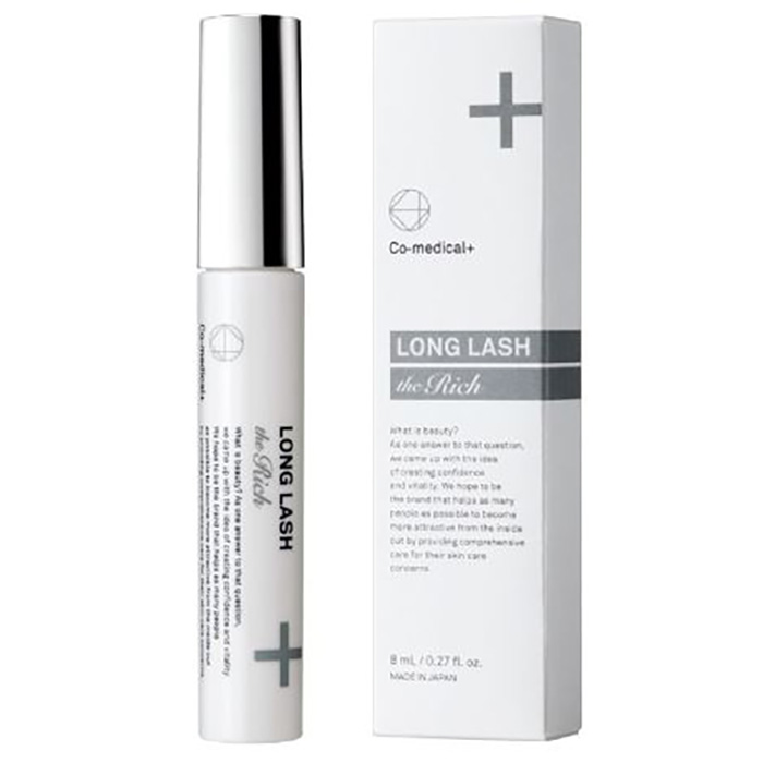 【Co-medical+】 COロングラッシュザリッチは、目元ケアの専門家と共同開発されたまつ毛美容液です。まつ毛にハリとコシを与えてくれるキャピキシルとミノキシジル誘導体をW配合し、まつ毛を健やかな状態に導きます。また、豊富な保湿成分の配合によってまつ毛にうるおいを与え、ツヤやかさもプラスしてくれます。