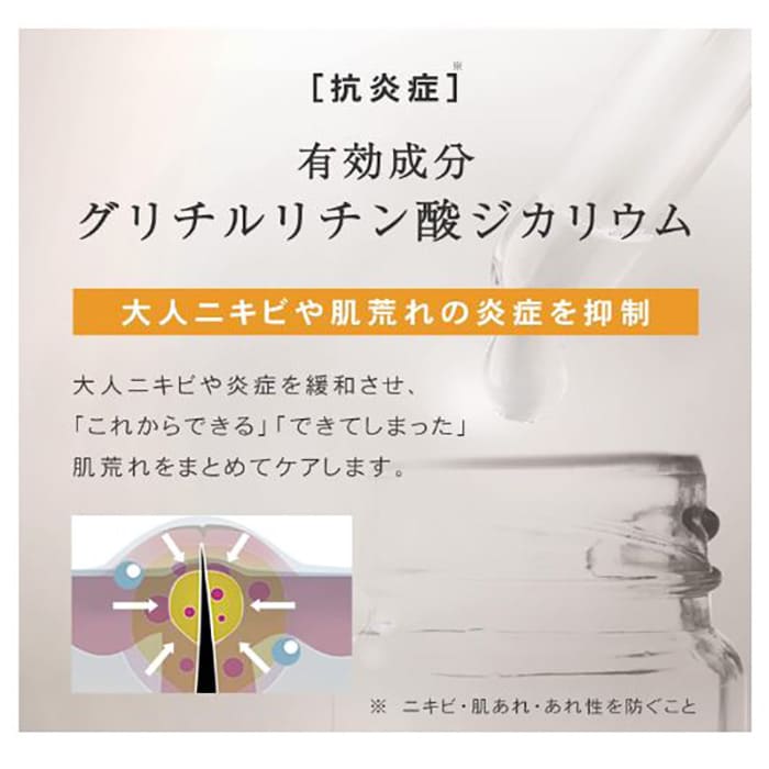 また、抗炎症成分と3種のうるおい成分を配合しているため、ニキビ後が気になる肌にもうるおいを与え、肌を整えます。