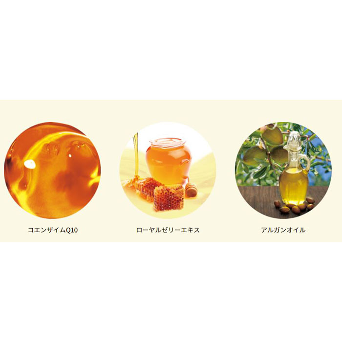 コエンザイムQ10、ローヤルゼリーエキス、アルガンオイル、グリセリン