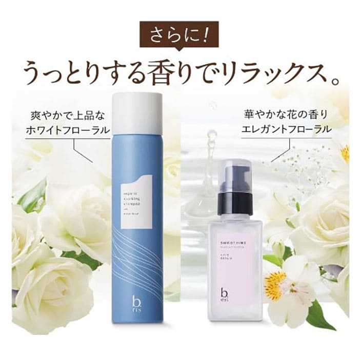 b.ris オーガニックスパークリングシャンプーは、頭皮と髪の構造に着目した極上のシルキームース泡が魅力の炭酸シャンプーです。ブースターサポート成分が浸透することでマッサージ効果をさらに高める特殊技術を採用し、血行を促進して成分が行き渡りやすくなる土台を瞬時に作り上げます。さらに、シルキームース泡のヘアパック効果で毛先までしっかりまとまる髪へと導きます。スキンケア基準の高級美容成分もたっぷりと配合されているため、ハリ・コシのある髪も夢ではありません。