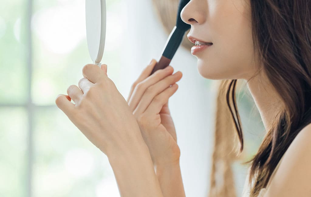 ニキビなどの肌荒れに合わせてベースメイクを選ぶ際は、毛穴に入り込みづらいパウダーファンデーションを選んだり、ニキビのもととなるコメドができにくい「ノンコメド処方」のアイテムを選ぶと良いでしょう。