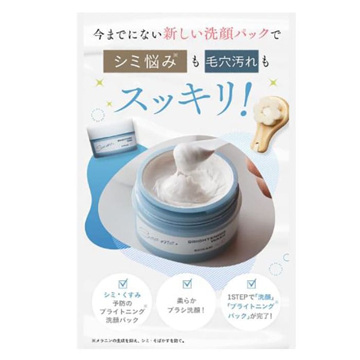 また、有効成分のグリチルリチン酸ジカリウム、プラセンタエキス-1が配合されているため、「メラニンの生成を抑えてシミ・そばかすを防ぐ」や「ニキビを防ぐ」「皮膚を清浄にする」効果も期待できます。10秒ほどパックすることで、ブライトニングパックとしても楽しめるため、1本で洗顔効果・パック効果を試したい方にはおすすめです。