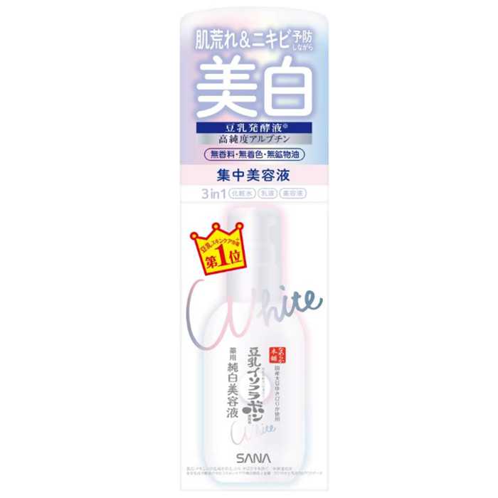 オリジナルの北海道産丸大豆ゆきぴりか使用の豆乳発酵液に、美白有効成分のアルブチンと肌荒れ防止成分を配合。ビタミンC・E誘導体により、透明感あふれるお肌に導きます。