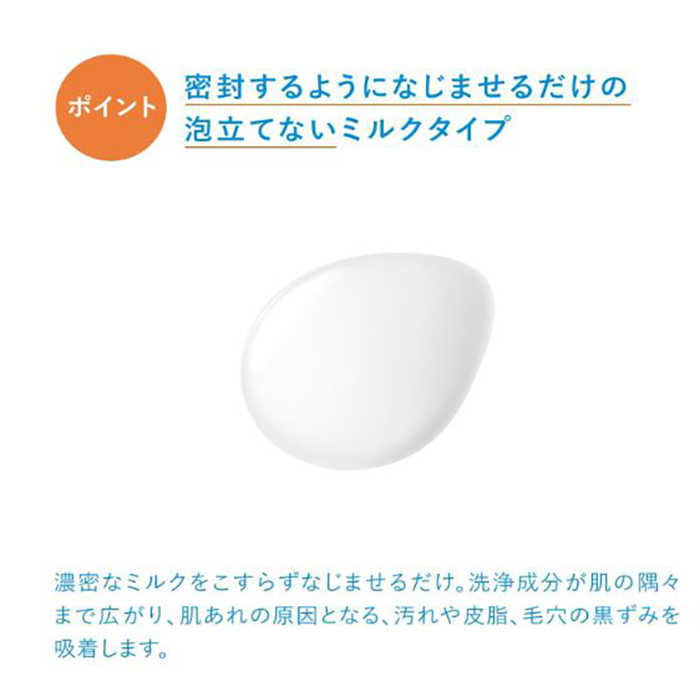 資生堂【IHADA】薬用うるおいミルク洗顔料 (医薬部外品)は、濃密なミルクをやさしく、くるくるなじませるだけの泡立てない洗顔料です。 洗浄成分が肌の隅々まで広がり、肌あれの原因となる、汚れや皮脂、毛穴の黒ずみを吸着し、 肌のうるおいを守りながら、汚れを落とします。 洗顔をしながらメイクも同時に落とすことができるため、忙しい方には最適でしょう。